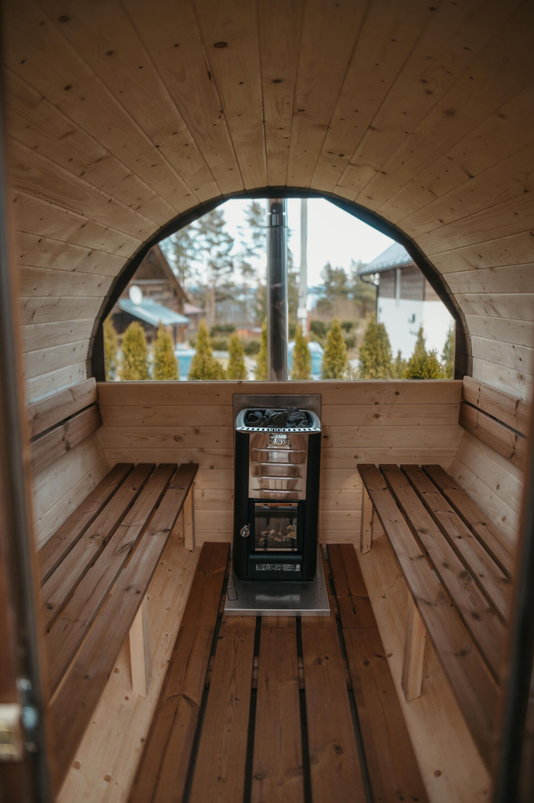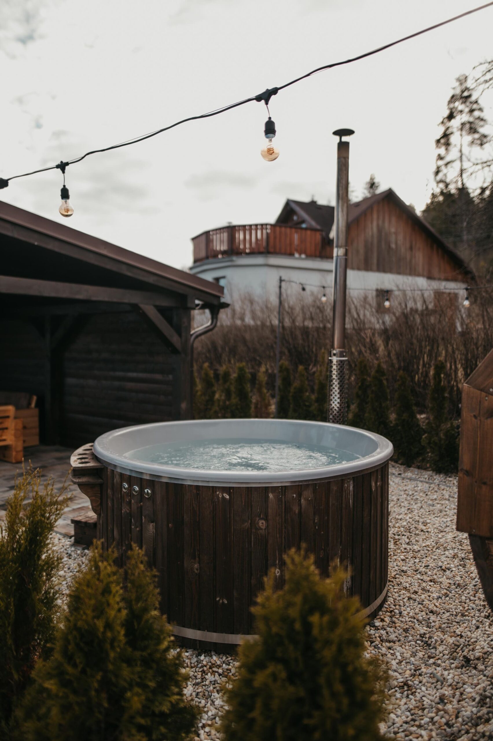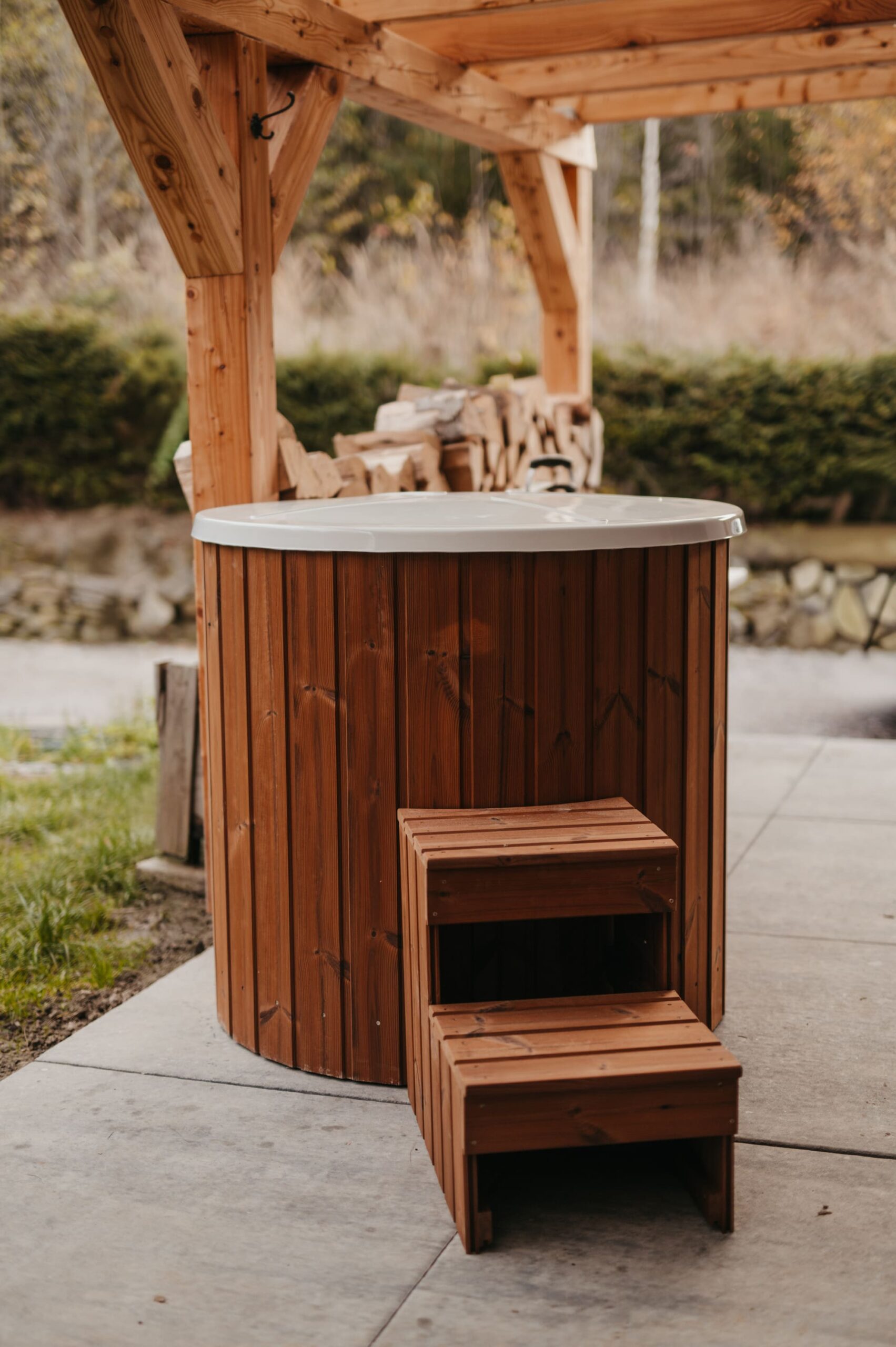 Hot tub – integriertem Ofen (mit Liegefläche)