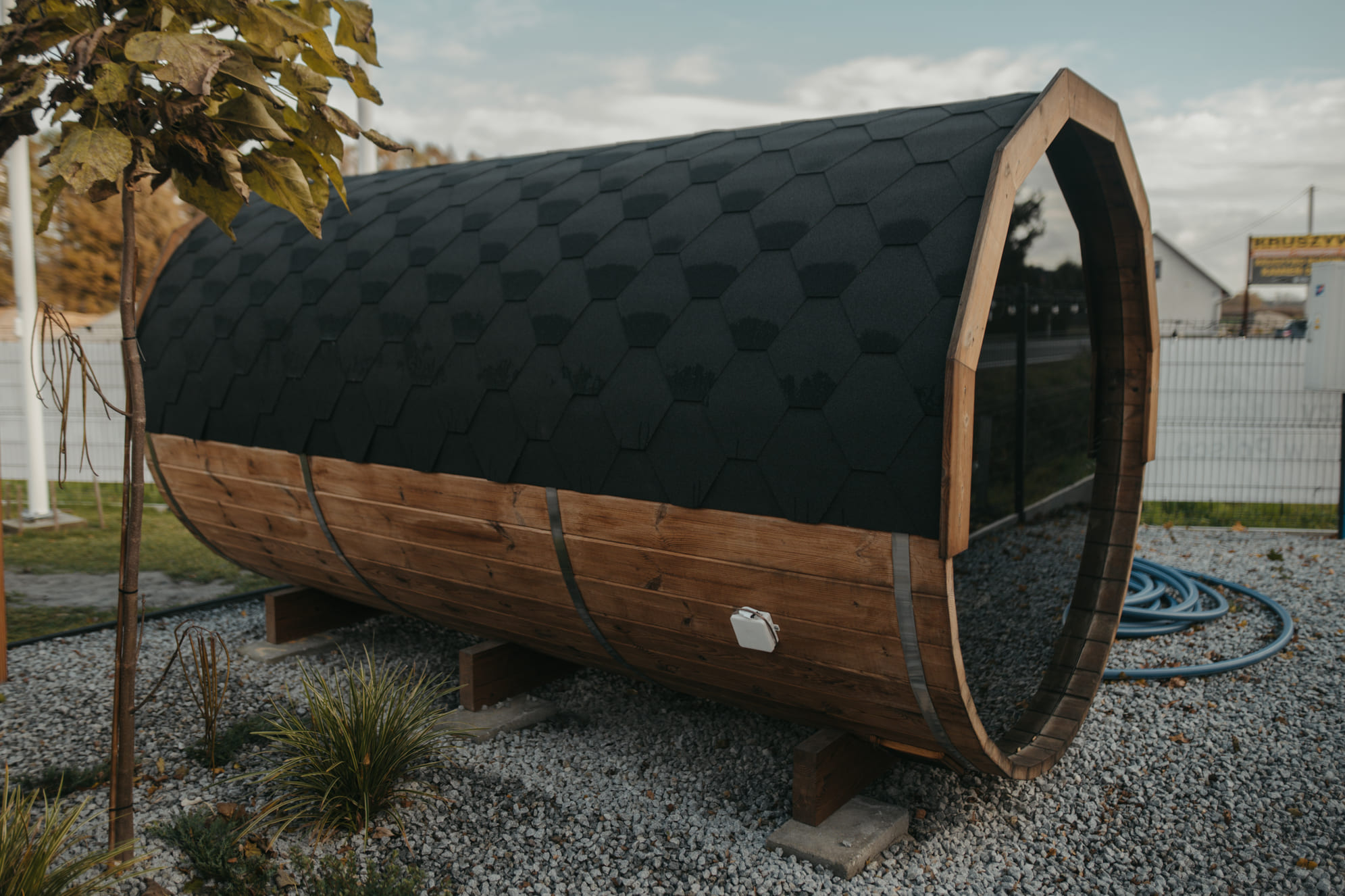 Eine Garten-Fasssauna, die es Ihnen ermöglicht, in Ihrem eigenen Garten ein privates Spa zu schaffen und die wohltuenden Wirkungen einer finnischen Sauna jederzeit im Jahr zu genießen. Saunagänge in der finnischen Sauna verbessern die Psyche, bauen Stress ab, fördern einen guten Schlaf und helfen, den Körper nach körperlicher Anstrengung zu regenerieren. Regelmäßiges Saunieren beschleunigt die Blutzirkulation, stärkt das Immunsystem und hilft dem Körper, schädliche Toxine effektiv abzubauen.