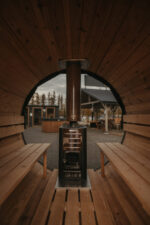 Die Konstruktion der Fasssauna ist aus hochwertigem Holz gefertigt, das feuchtigkeits- und witterungsbeständig ist, was eine lange Lebensdauer und einfache Wartung gewährleistet. Die Sauna ist mit einem zuverlässigen Ofen ausgestattet, der es Ihnen ermöglicht, die Temperatur nach Ihren Wünschen zu regulieren, und ihr natürliches Design fügt sich harmonisch in jedes Äußere ein.