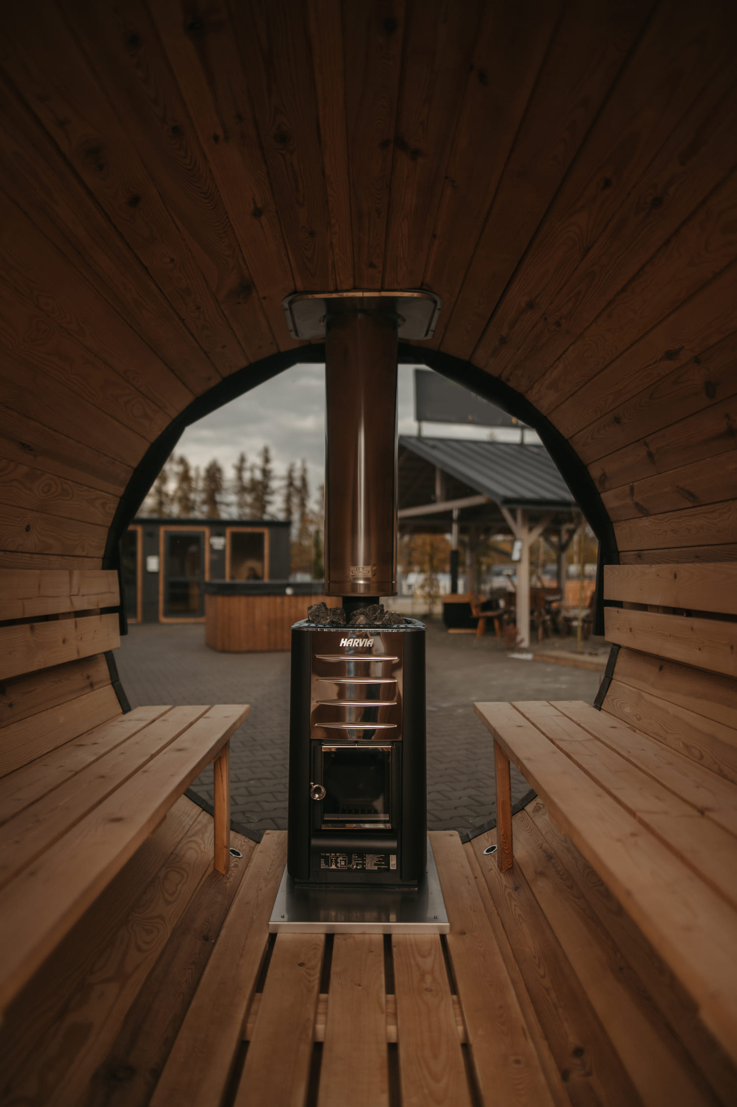 Dieses Modell ist für die bequeme Nutzung von bis zu sechs Personen gleichzeitig konzipiert, was es zu einem idealen Ort zum Entspannen mit Familie oder Freunden macht. Die Fassform sorgt für eine schnelle und gleichmäßige Erwärmung des Innenraums, wodurch die Zeit, die zum Erreichen der optimalen Temperatur benötigt wird, verkürzt wird. Der innere Vorraum bietet praktischen Platz zum Umziehen oder Ablegen persönlicher Gegenstände, sodass Sie maximalen Komfort genießen können, unabhängig von der Jahreszeit.