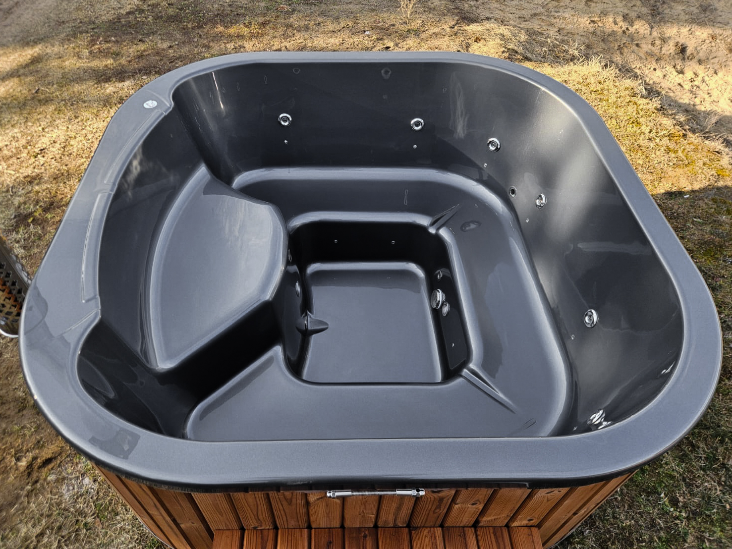 Quadratischer Hottub mit externem Ofen