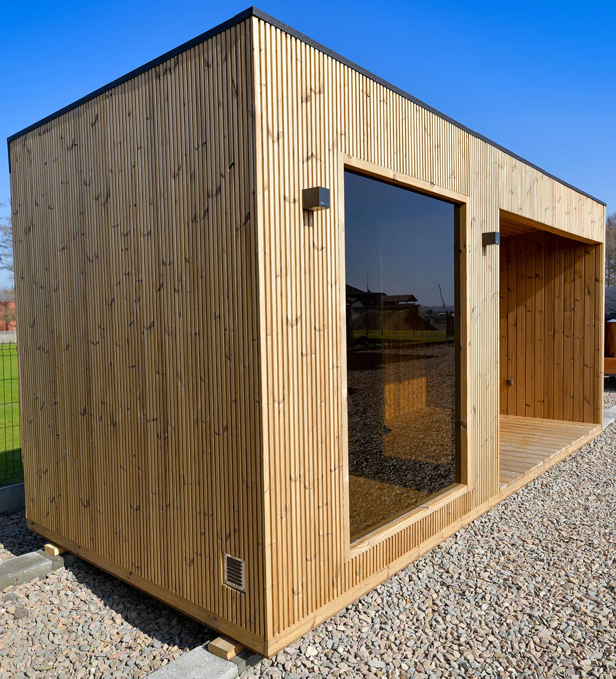 Die Gartensauna von Gardwells ist eine ausgezeichnete Idee, um Ihren Garten zu bereichern. Indem Sie ein wenig Luxus hinzufügen, schaffen Sie eine Oase der Entspannung. Das Häuschen kann jeden Tag leicht unvergessliche Erlebnisse garantieren. Es wurde von einem Team aus echten Profis und Enthusiasten gefertigt, die auf jedes Detail geachtet haben, wodurch das Saunahaus 5 x 2,2 m – Sauna eine Vielzahl zuverlässiger und innovativer Lösungen bietet. Zum Beispiel befindet sich zwischen den Fichtenholzbrettern eine Füllung aus gepresster Wolle mit einer Dicke von 50 mm. Dadurch können wir sicher sein, dass die Wärme im Inneren der Sauna nicht durch die Wände entweicht. Der installierte LED-Streifen in der Sauna hilft, eine einzigartige Atmosphäre zu schaffen. Eine solche Beleuchtung sorgt sicherlich dafür, dass die Saunabesuche komfortabel sind.